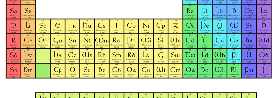 Inspired by Poul Anderson's essay Uncleftish Beholding - wherein he explains the basics of atomic theory without using any English words of non-Germanic origin - I wanted to make a Periodic Table of the Elements (or, "Roundaround Board of the Firststuffs", as he calls it) doing the same. I put one together (made with Crayon!) a… Continue reading The Roundaround Board of the Firststuffs